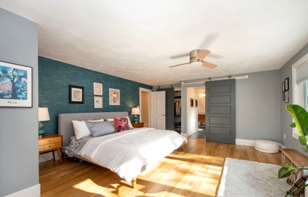 Beneath the stairs, the first main floor bedroom lost a little space in bringing the stairwell up to code, but she gained a storage area. She’s snug, so best suited for use as a study or nursery. The main floor primary suite is right across the hall.