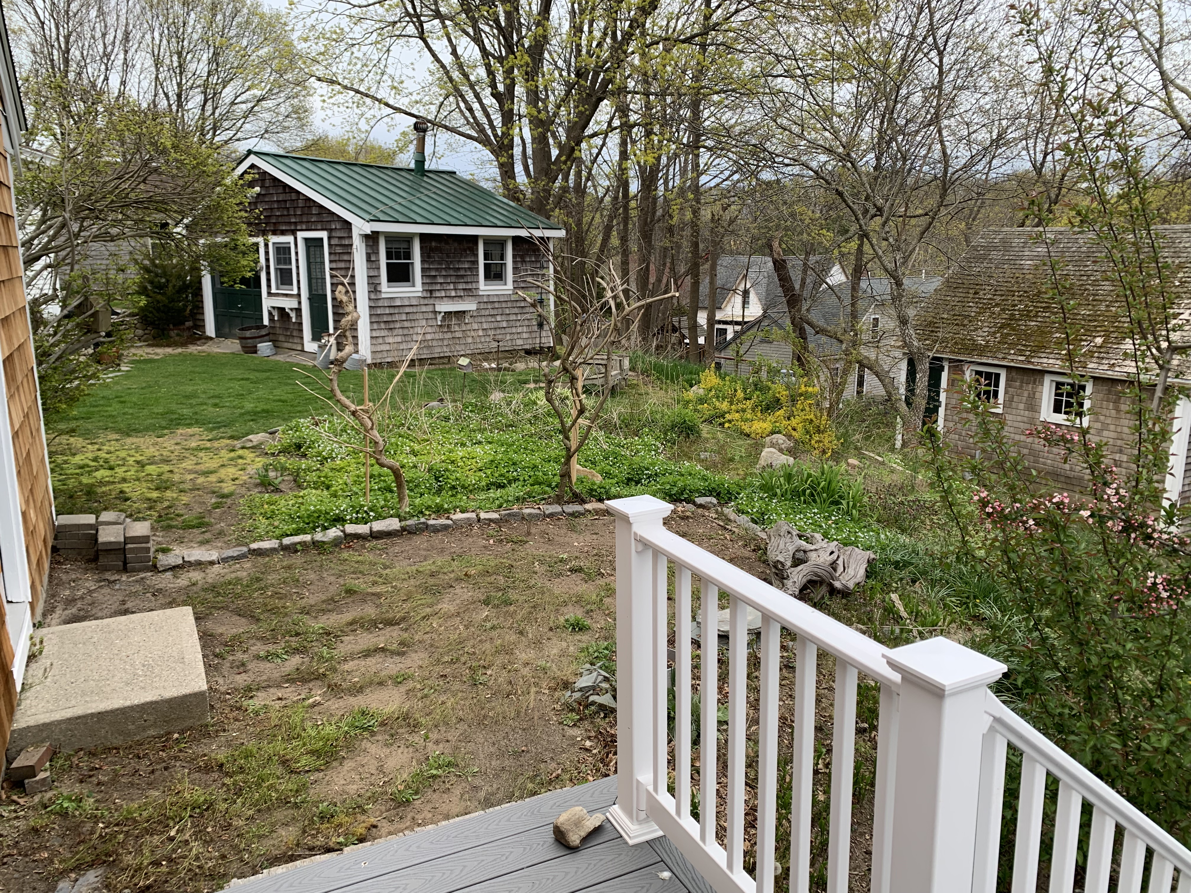There were trees dangerously crowding and even overhanging the house – we trimmed and removed several to prevent mold build-up and avoid snow-bound disasters, things we never would’ve considered in CA.
