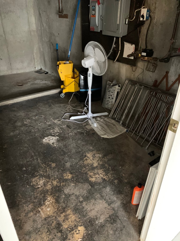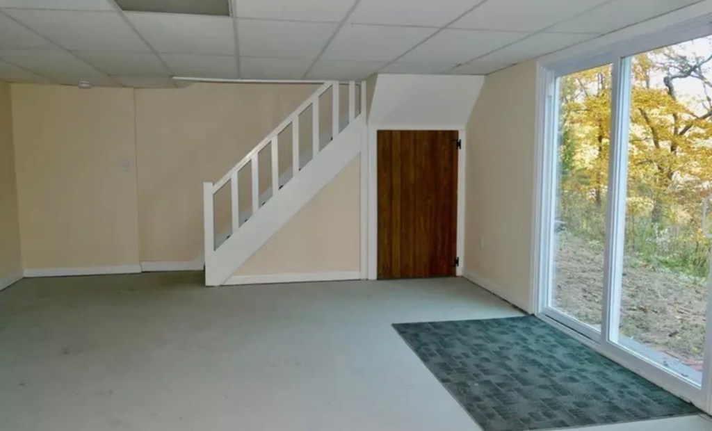 At first glance, the basement doesn’t look a whole lot different now than it did before. But if you head into the rear storage space, you’ll see the most radical makeover, because not only is that where the water heater, HVAC center and electric panel are located, and the oil tank was removed in favor of converting the baseboard heating to gas … The entire room was re-walled – those abutting the ground were fully spray foamed, peg board added for ease of organization. The strange dog shower (or whatever?) was removed and the entire floor was resurfaced. Finally, there are now a ton of racks for ease of storage.