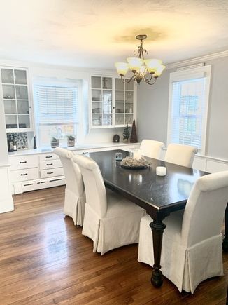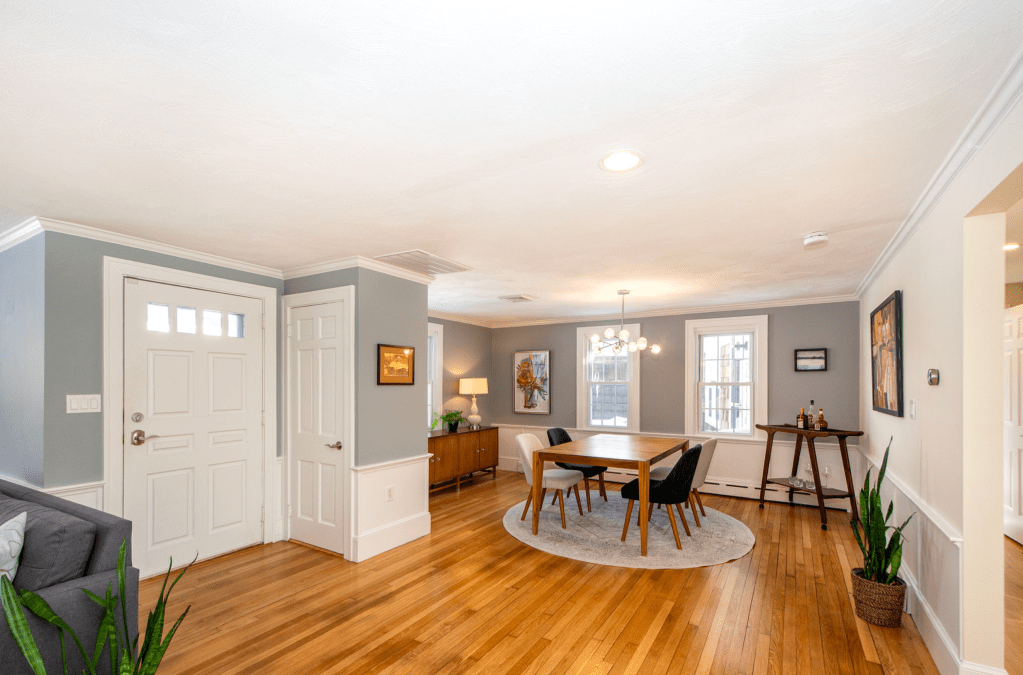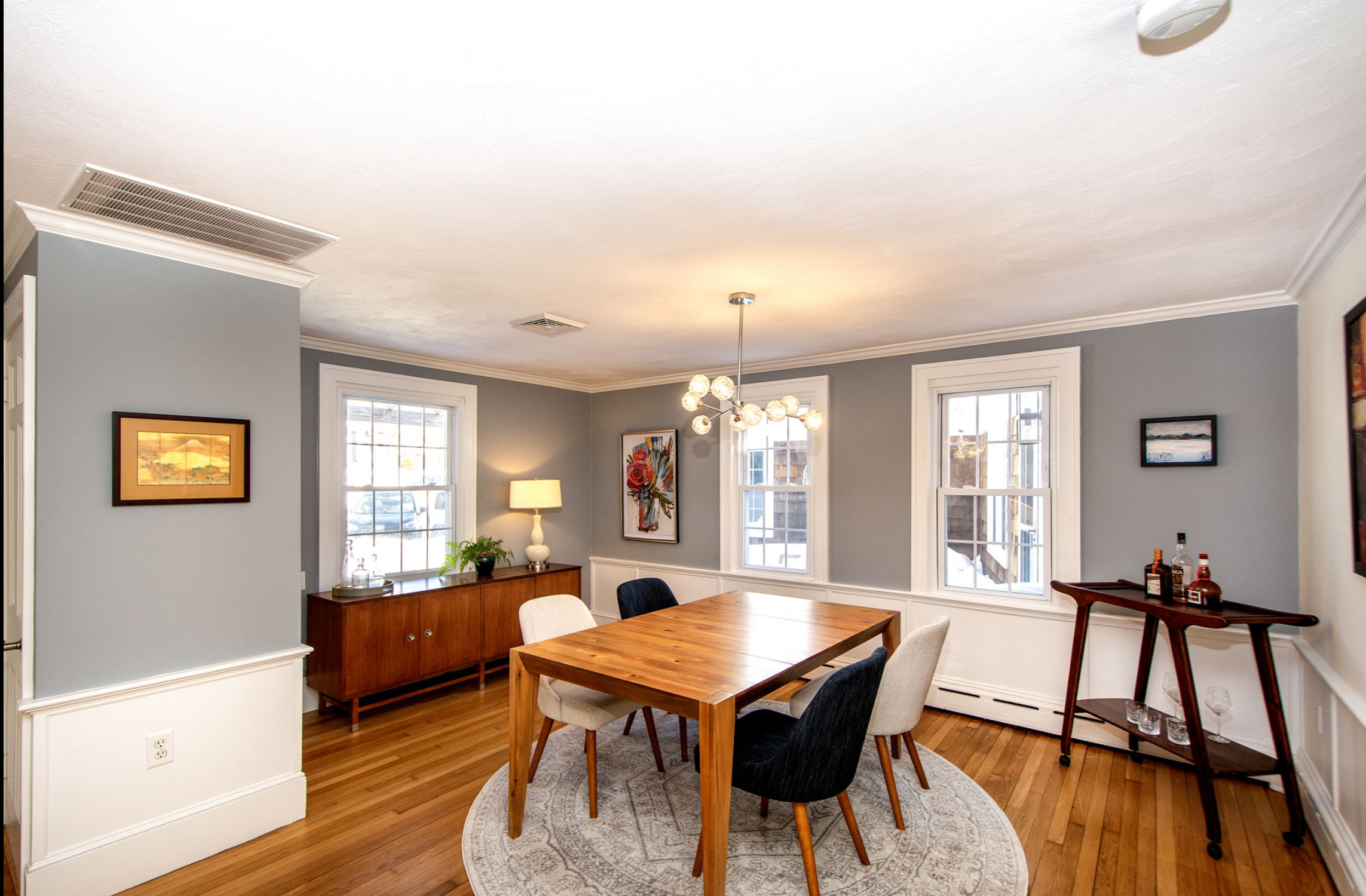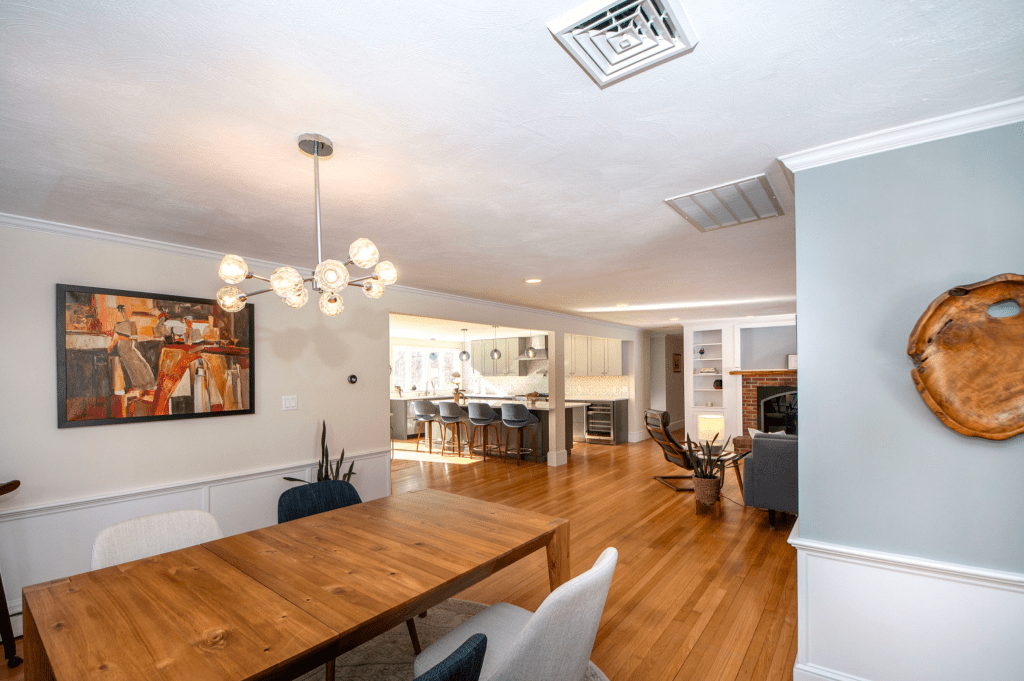 Even though it’s all unified, the Dining Room is still the Dining Room. And she’s been updated! New lighting, no more dated built-ins, fresh paint, refinished flooring. Oh and air conditioning!