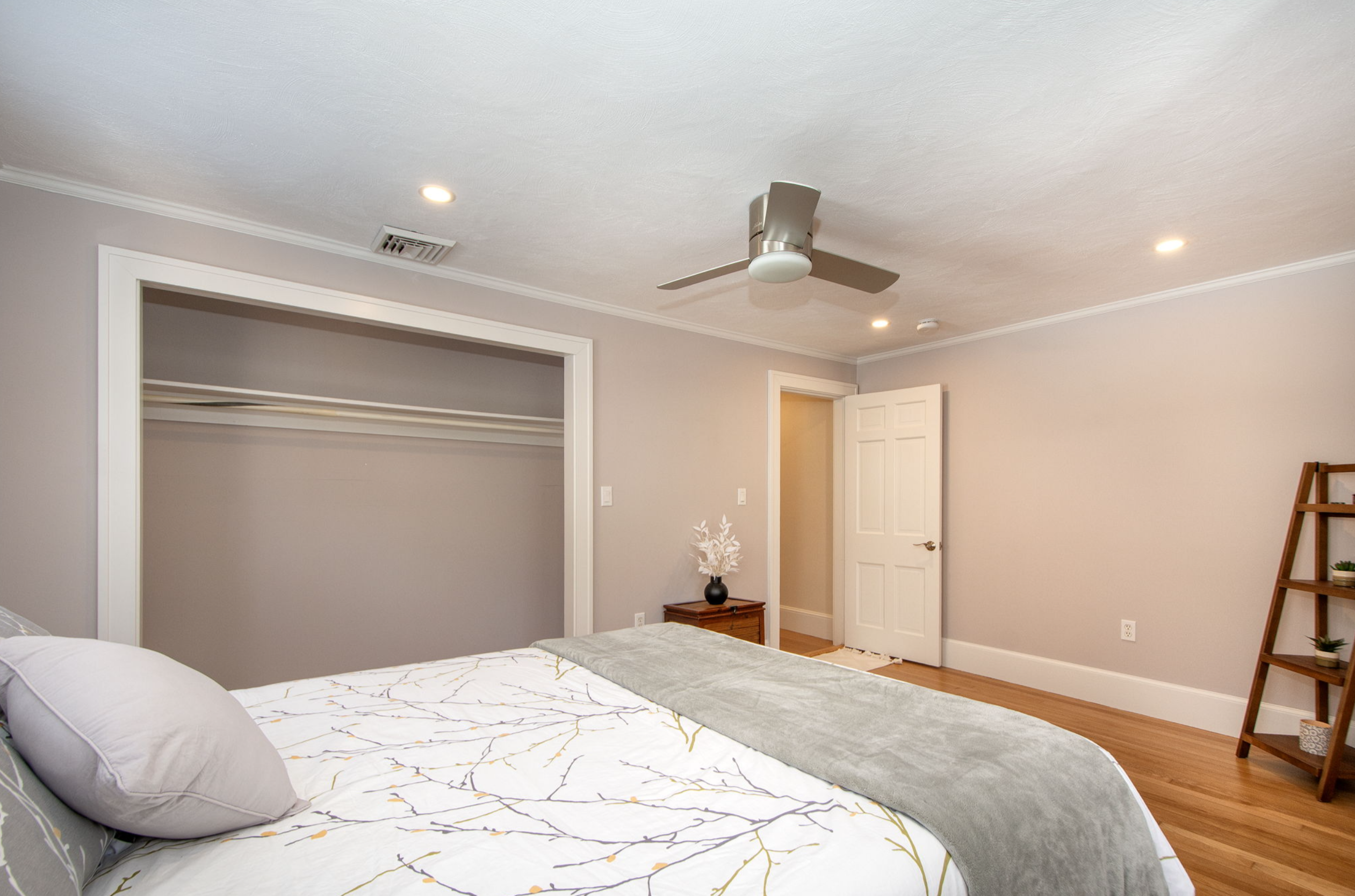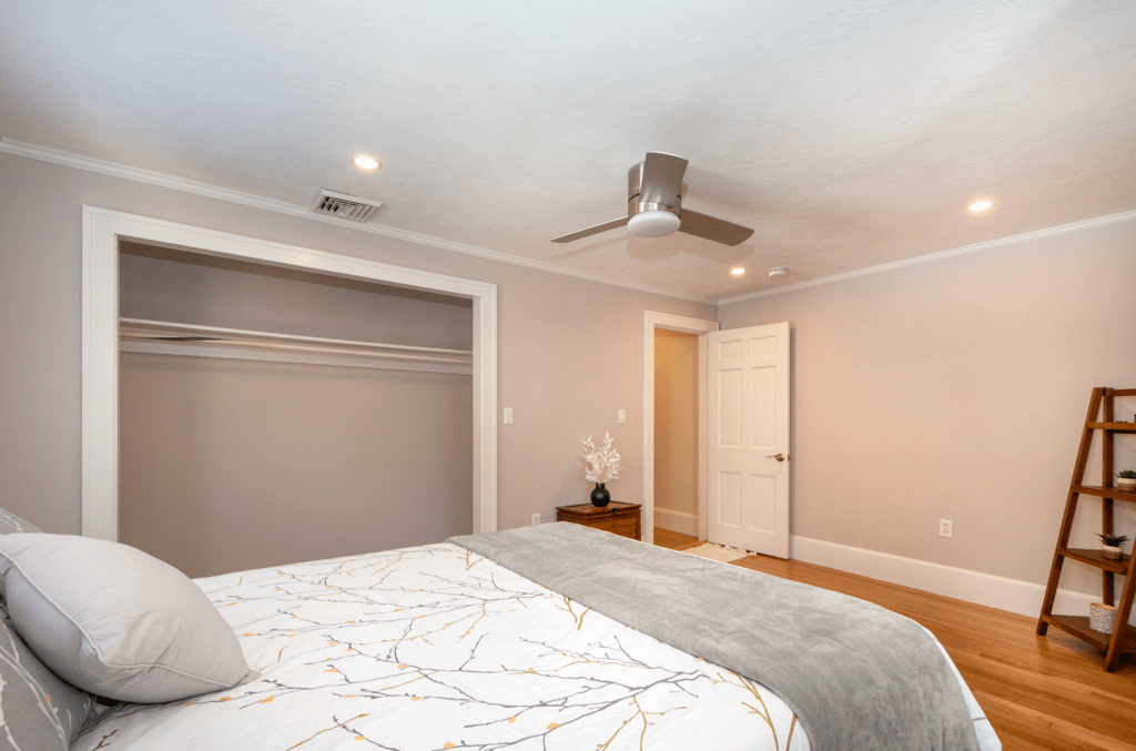 The third and final bedroom on the main floor was used as a study while we were there, hence the removal of the closet doors, but since the size of the house holds great appeal to either growing or multi-generational families (or both), we decided to stage it as a bedroom.